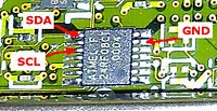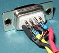 Bei dem Chip handelt es sich um einen EEPROM mit I2C Bus. Also reicht hier ein kleiner Adapter, der die Pegel der seriellen PC-Schnittstelle auf das 5V TTL Niveau bringt. Die Schaltung dazu ist im oberen Link ausführlich erläutert. Hier nur noch mal die Bilder des Kunstwerkes. Da es nur zwei Widerstände und 2 Z-Dioden sind, kann die ganze Schaltung gleich an den Stecker gelötet werden. Die Kabelenden auf der anderen Seite werden ordentlich verzinnt (weiter unten steht, warum das nützlich ist).